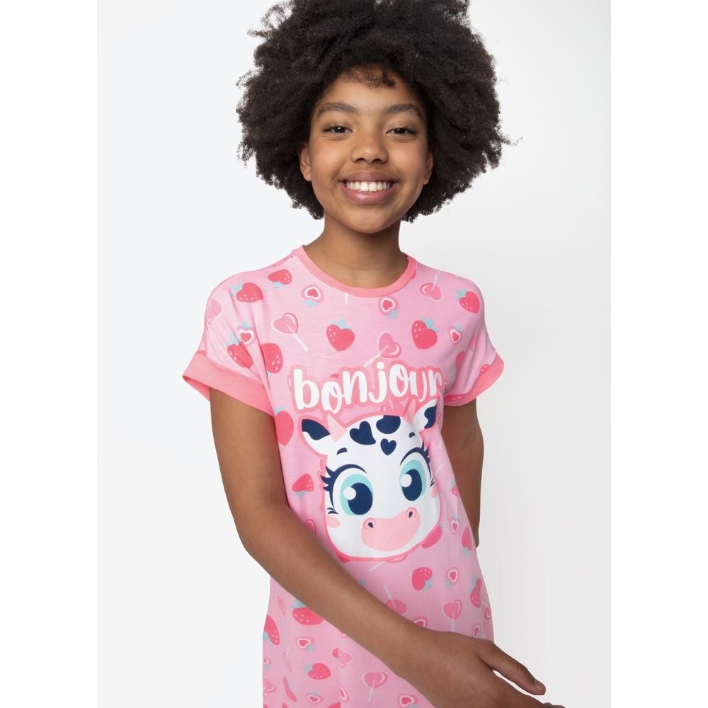 Camisola Manga Curta Viscolycra Menina Teen Vaca Romântica - Puket