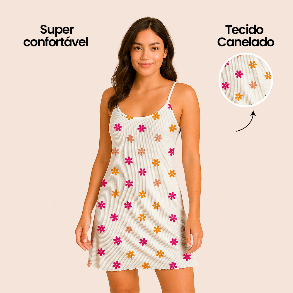 Camisola Pijama Feminino Estampada Tecido em Suede Canelado - Tamanhos P, M, G, GG