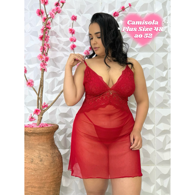 Camisola plus Size + Com Calcinha+ Sensualle+Pijama Curto+Linha Noite+ Roupa de Dormir