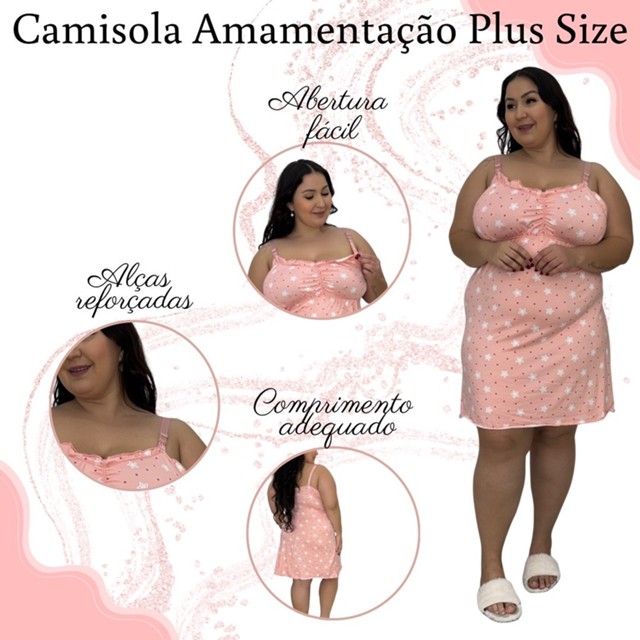 | Kit Plus Size Camisola Amamentação Gestação e Robe luxo Renda | R$ 79,50 | 34% | 4.9/5 | 171 |