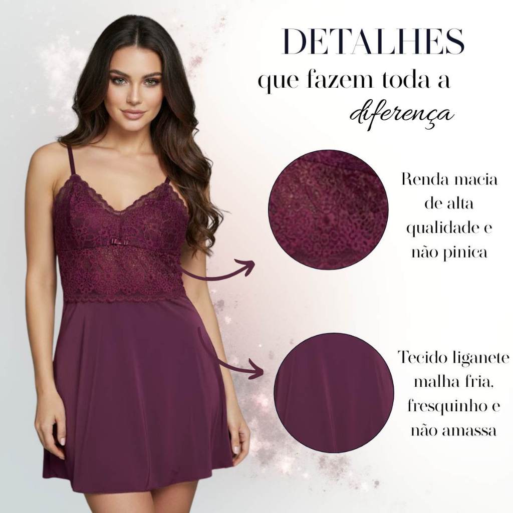 Aproveite um descanso elegante e confortável com nossa peça produzida em liganete macia e fresca, com renda delicada que valoriza o design. O caimento suave proporciona liberdade de movimento, conforto e um visual sofisticado. Ideal para quem aprecia noites leves e acorda se sentindo ainda mais bonita e confiante. Alças reguláveis garantem ajuste preciso ao corpo, enquanto o modelo sem bojo traz naturalidade e praticidade. O toque geladinho da malha fria proporciona frescor e conforto em todas as estações, além de ser fácil de lavar e secar rapidamente. Uma peça versátil para usar tanto para dormir quanto para relaxar em casa com estilo. Tabela de Medidas P (36/38): Busto 84-88 cm | Cintura 70-74 cm | Quadril 90-94 cm M (40/42): Busto 92-96 cm | Cintura 78-82 cm | Quadril 98-102 cm G (44/46): Busto 100-104 cm | Cintura 86-90 cm | Quadril 106-110 cm GG (48): Busto 106 cm | Cintura 94 cm | Quadril 114 cm Características do Produto -Liganete com toque suave e caimento leve -Detalhes de renda delicada -Alças ajustáveis para melhor adaptação -Sem bojo, para conforto natural -Secagem rápida e tecido de fácil manutenção -Acabamento reforçado e costura confortável Composição -Tecido Principal: 96% poliéster, 4% elastano Renda: 90% poliamida, 10% elastano Perguntas Frequentes O produto é igual ao da foto? Sim, usamos fotos reais com modelos reais. Você receberá exatamente o produto apresentado. O produto vem embalado de forma discreta? Sim, envio em embalagem lisa e sem identificação externa. Possui garantia? Sim. Produção própria, com garantia de fábrica de 30 dias. Como comprar mais de uma opção Para adquirir mais cores ou modelos, basta adicionar cada item ao carrinho e finalizar tudo junto. Importante Confira atentamente tamanho e cor antes de concluir o pedido. Não realizamos alterações via chat após a finalização. O envio é feito exatamente conforme o pedido registrado no sistema.