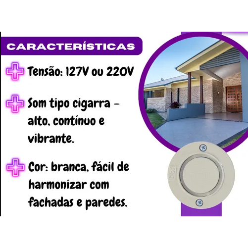 Campainha Cigarra Bivolt Sobrepor Externa 110V ou 220V