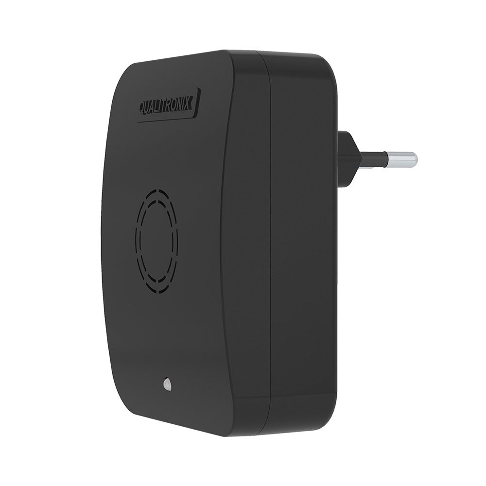 Características Principais do Produto: Alimentação: Bivolt Cor: Preto Certificado Anatel: 06865-18-11748 Marca: Qualitronix Material: ABS Sessão: Campainha Tipo do Equipamento: Campainha Características Adicionais: Campainha sem fio, composta de transmissor e receptor Alcance de até 150 metros quando livre de obstáculos Resistente a respingos de água. A resistência à água pode ficar comprometida caso o produto seja preso com as fitas de fixação 52 toques musicais 4 níveis de volume Indicador visual de alto-brilho Potência