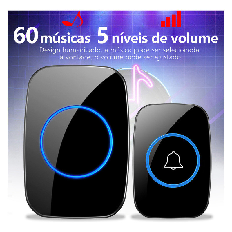| Campainha Eletrônica Sem Fio 300metros,pager Idosos,60músic este produto | R$ 57,96 | 8% | 5.0/5 | 19 |