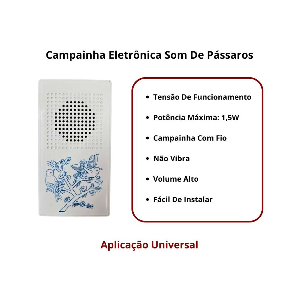 Campainha Residencial Eletrônica com Som de Pássaros 127V DNI 6340 Campainha Canto de Pássaros