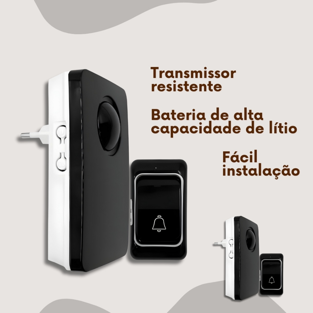 Campainha Sem Fio Bivolt A Prova d'água Residencial com 38 Toques Longo Alcance ate 200 Metros