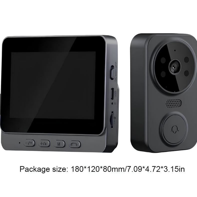Campainha Sem Fio com Câmera e Intercomunicador de Vídeo – Tela de 4,3" e Visão Noturna Infravermelha Descrição do Produto: A Campainha Digital com Câmera é ideal para quem busca segurança e praticidade na porta de casa. Com visor de alta definição, comunicação em tempo real e visão noturna, permite monitoramento eficaz de visitantes. A instalação é totalmente sem fio e o sistema funciona com um protocolo seguro de 2.4G, sem necessidade de conexão com a internet tradicional. Destaques do Produto: Instalação sem fio: Fácil de instalar, não exige cabeamento. O emparelhamento entre as unidades é feito com um botão. Tela IPS de 4,3 polegadas: Proporciona imagem clara e nítida com amplo ângulo de visão. Intercomunicador de vídeo bidirecional: Permite conversar com o visitante em tempo real por meio de microfone e alto-falante embutidos. Gravação e registro: Armazena vídeos e fotos automaticamente com cartão de memória inserido (não incluso). Visão noturna infravermelha: Conta com 6 LEDs para visualização clara mesmo no escuro. Toques personalizáveis: Escolha entre 6 sons diferentes para o toque da campainha. Alcance de transmissão: Funciona com protocolo privado 2.4G, com sinal estável e alcance de até 150 metros (dependendo das condições do ambiente). Especificações Técnicas: Material: ABS Tela: IPS 4,3” Resolução de vídeo: 640 x 480 (MJPEG) Sensor de imagem: GC0328, 85° de ângulo, com 6 LEDs infravermelhos Armazenamento: Suporte para cartão SD de até 128 GB Bateria: 800 mAh (autonomia de 1 a 3 meses dependendo do uso) Alimentação: DC 5V/2A Áudio: Microfone e alto-falante integrados Conectividade: Protocolo privado 2.4G (não utiliza Wi-Fi convencional) Alcance de transmissão: 1 a 150 metros Temperatura de trabalho: -10°C a 60°C Umidade de trabalho: 10% a 90% Tamanho da embalagem: 180 x 120 x 80 mm Observações: O cartão de memória necessário para gravação não acompanha o produto.