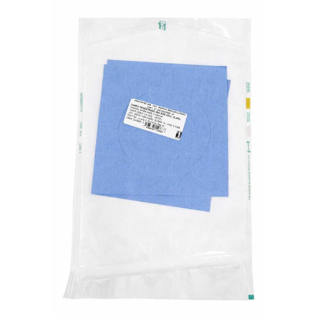 Campo Fenestrado - Não Estéril em SMS Tamanho Aproximado: 0,40 x 0,40cm Cor: Azul Claro Pacote com 10 Unidades Fenestra de 10cmReg: Anvisa 80441390009