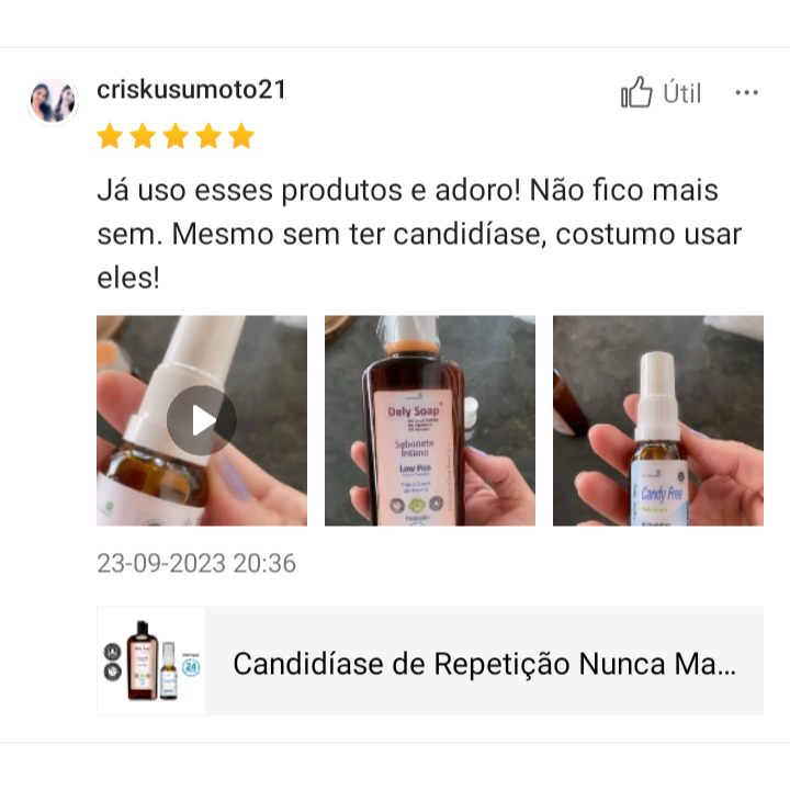 | Candidíase e Vaginose, sabonete Dely Soap e Higienizador Candy Free... este produto | R$ 72,92 | 27% | 4.9/5 | — |