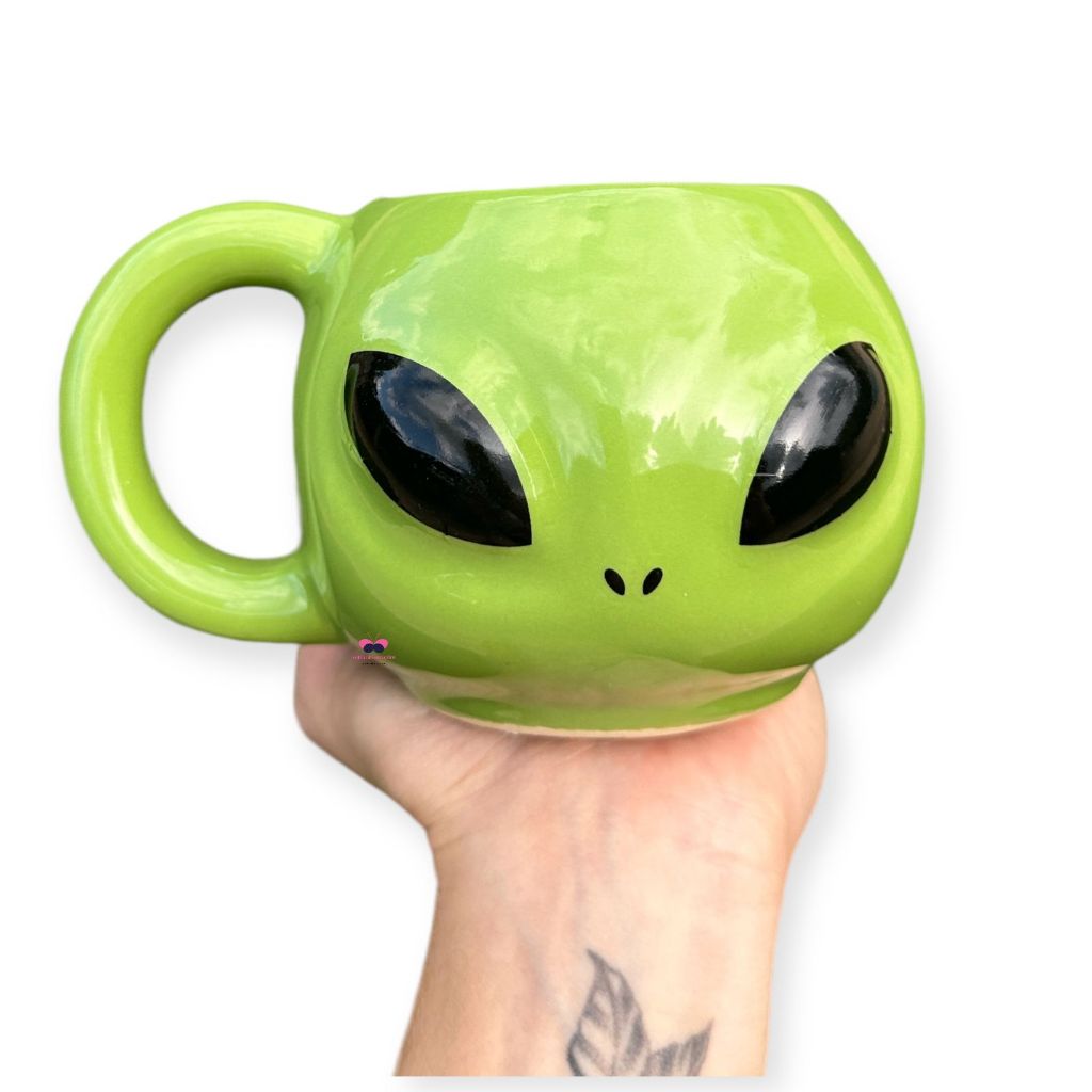 Caneca 3D Alien ET 300ml Cerâmica Verde Criativa Presente Geek Decorativo Colecionável