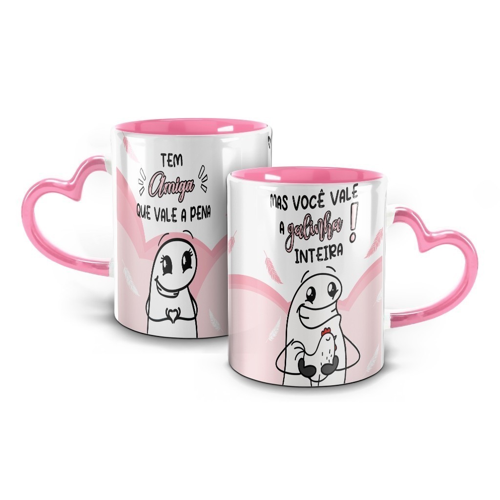 Caneca "Amizade Galinácea": O presente perfeito para sua melhor amiga! Celebre a amizade de uma forma única com a Caneca "Amizade Galinácea". Com alça e interior rosa, esta caneca é mais do que uma peça de cerâmica, é uma declaração de amizade divertida e descontraída. Os dizeres na estampa dizem tudo: "Tem amiga que vale à pena, mas você vale a galinha inteira!", garantindo momentos de risos e lembranças especiais. Detalhes Técnicos: Dimensões da Caneca: Altura: 9,5 cm Diâmetro: 8 cm Capacidade: Aproximadamente 325 ml Características: Caneca na cor: Rosa Material: Cerâmica super resistente Pode ser levada ao microondas Peso: 450 gramas Estampa: Alta definição, não desbota com o tempo Presenteie seu melhor amigo com essa caneca única e reforce os laços de amizade de uma forma original.