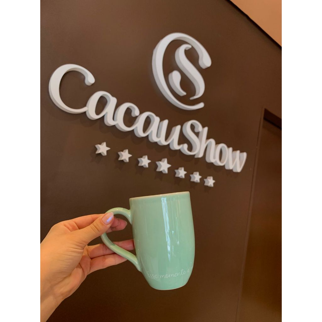 Loja Oficial Cacau Show, a maior rede de chocolates finos do Brasil! Produto Novo | Original | Lacrado | Pronta Entrega _______________________________________________________________________________________________ Descrição dos Produtos: Caneca com a frase "Esse momento é meu", para um café ainda mais gostoso! Estampada com a logo CS. Ideal para presentear acrescentando trufas! Material: Cerâmica | Medidas: Altura 11,5 cm | Largura 12,2 cm | Capacidade 350 ml. Por que escolher a Caneca Fusion Verde 350 ml A Caneca Fusion Verde não é apenas uma peça funcional, mas também um item decorativo que pode ser uma excelente escolha para presentear ou para se mimar. Essa caneca une praticidade com muito estilo, proporcionando um momento agradável no seu dia. _______________________________________________________________________________________________ *Enviamos em até 24 horas após a confirmação do pagamento. *Confira meus outros anúncios e aproveite o frete. *Qualquer dúvida estarei à disposição via chat, teremos o maior prazer em responder! *Sua compra 100% protegida! Agradecemos a visita em nossa loja e Boas Compras! Att, Distribuidora show