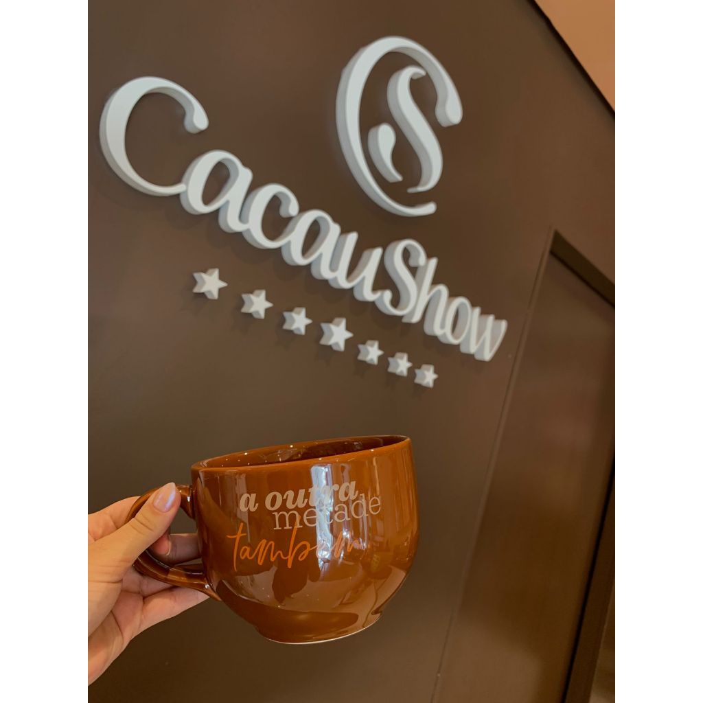 | Caneca Cacau Show Jumbo Marrom 740 ml Chocolate Quente Chá Café Sop... este produto | R$ 57,70 | — | 5.0/5 | 6 |