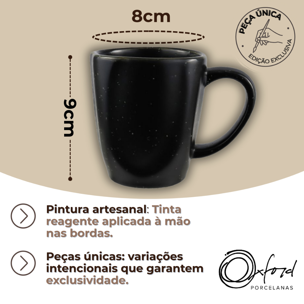 Caneca Café Chá 260ml Ryo Volcano Oxford Preto Fosco