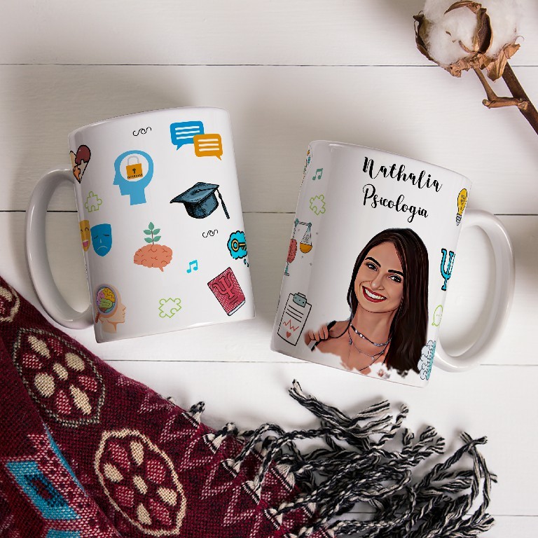 Caneca Com Caricatura Personalizada De Profissão Psicologia Psicólogo - 325ml