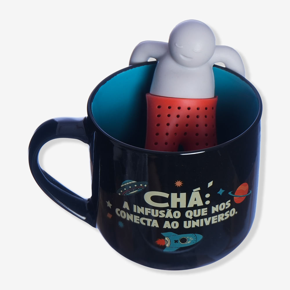 Depois de um dia cheio de Aventuras explorando novos planetas, você não vê a hora de tomar um cházinho? A gente te ajuda! Com essa caneca o chá da tarde ficou mais prático, basta escolher a erva de sua preferência, adicionar no bonequinho e cobrir com água quente! Com essa caneca você cria momentos inesquecíveis ao lado de quem você ama! A caneca é importada, e é uma ótima companhia para quem gosta de chá, possui 350ml de capacidade para você se esbaldar no lanchinho da tarde! Feita em cerâmica e com detalhes incríveis que vão fazer você se apaixonar, além de possuir um infusor o que deixa a hora do chá mais fácil e divertida! Não importa a hora, sempre é hora de chá! Caneca: Altura: 8,5cm| Largura: 9,5cm| Profundidade: 9cm | Peso: 310gr/ 280gr| Capacidade: 350ml| Material: Cerâmica Boneco: Altura: 8cm| Largura: 2cm| Comprimento: 6cm | Peso: 0,30gr| Material: Silicone Cuidados e recomendações de uso: Lavar com água, esponja macia e detergente neutro. Não vai ao micro-ondas, nem à lava-louças. Não utilizar químicos e abrasivos. Choques ou quedas podem trincar ou quebrar o produto, pois trata-se de um produto de cerâmica