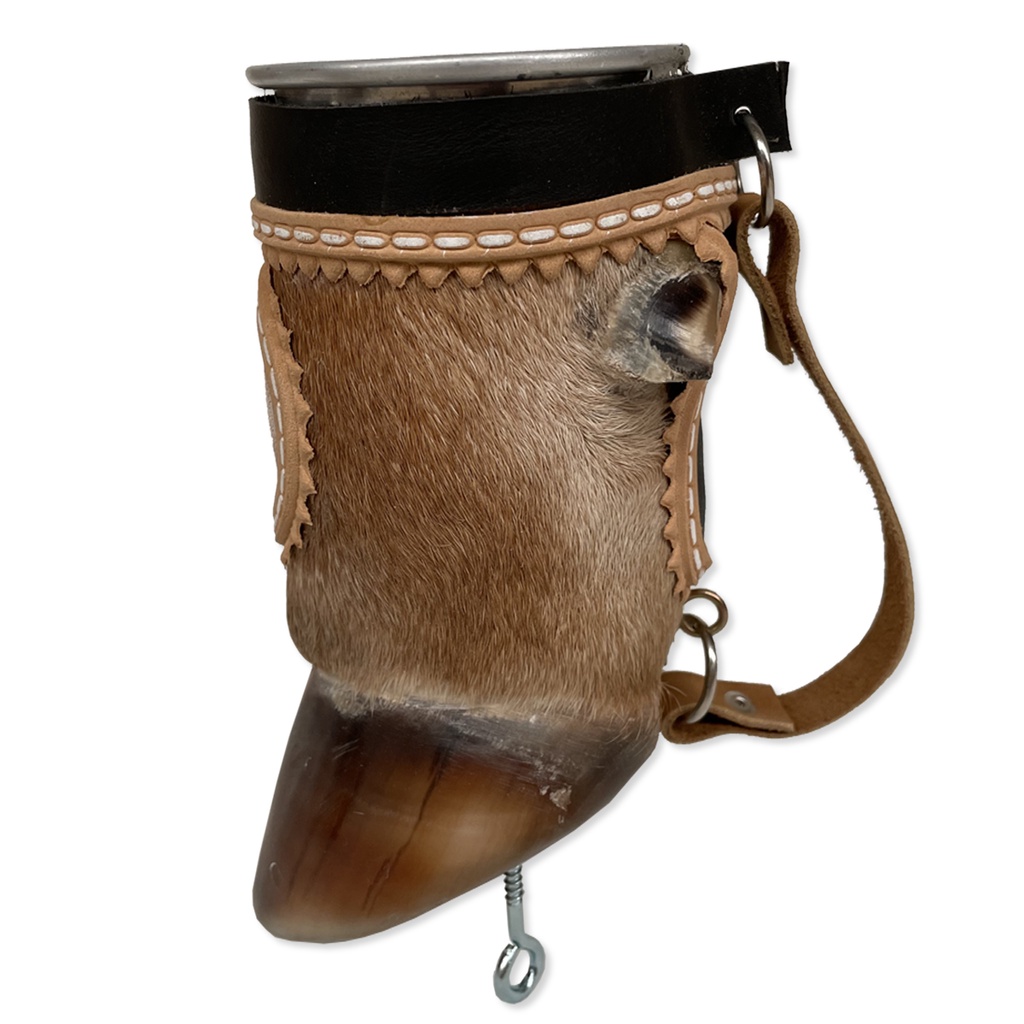 Copo pé de boi Alumínio com capacidade para 300ml. Caneca pé de boi , com parte interna de alumínio , externamente confeccionada com pé de boi natural , produto com excelente qualidade e procedência! Não possui mal cheiro , muito bem produzida e com acabamento caprichado! Possui alça de couro. DIMENSÕES: Altura:18 cm. Diâmetro: 8cm. OBS: Por se tratar de um produto natural podem ocorrer variações nas tonalidades do couro do produto, portanto enviaremos conforme nosso estoque e como mostra na ultima foto do anuncio.
