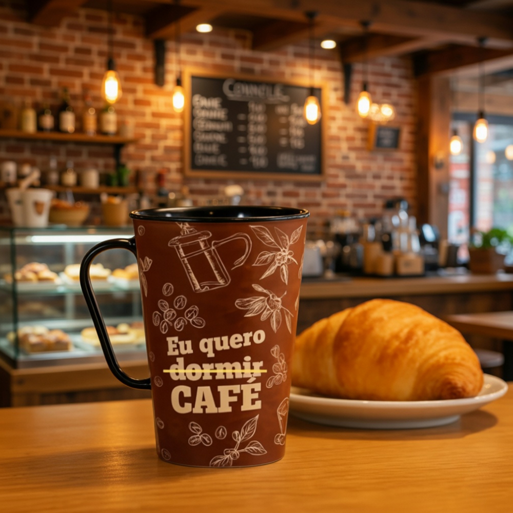 A Caneca de Café 430ml Estampa Coffee é ideal para quem ama café e quer aproveitar cada momento com mais estilo. Com design moderno e estampas temáticas de café, ela traz um visual bonito e descontraído para sua cozinha, escritório ou cantinho do café. Fabricada em plástico resistente e leve, essa caneca é perfeita para o uso diário. Possui capacidade de 430ml, ideal para café, cappuccino, leite, chá ou outras bebidas. Seu tamanho maior proporciona mais conforto para quem gosta de uma boa quantidade de bebida. Além de prática e funcional, a caneca temática coffee também é uma ótima opção para presentear amigos, familiares ou amantes de café. Seu design moderno combina com diversos ambientes e deixa o momento do café ainda mais especial. Perfeita para quem busca caneca de café grande, resistente e estilosa para o dia a dia. 📦 Informações do Produto Produto: Caneca de Café Estampada Material: Plástico resistente Capacidade: 430ml Altura: 11 cm Diâmetro: 9 cm Estampa: Tema Coffee / Café Uso: Ideal para café, cappuccino, leite, chá e outras bebidas Leve e prática: Perfeita para uso diário