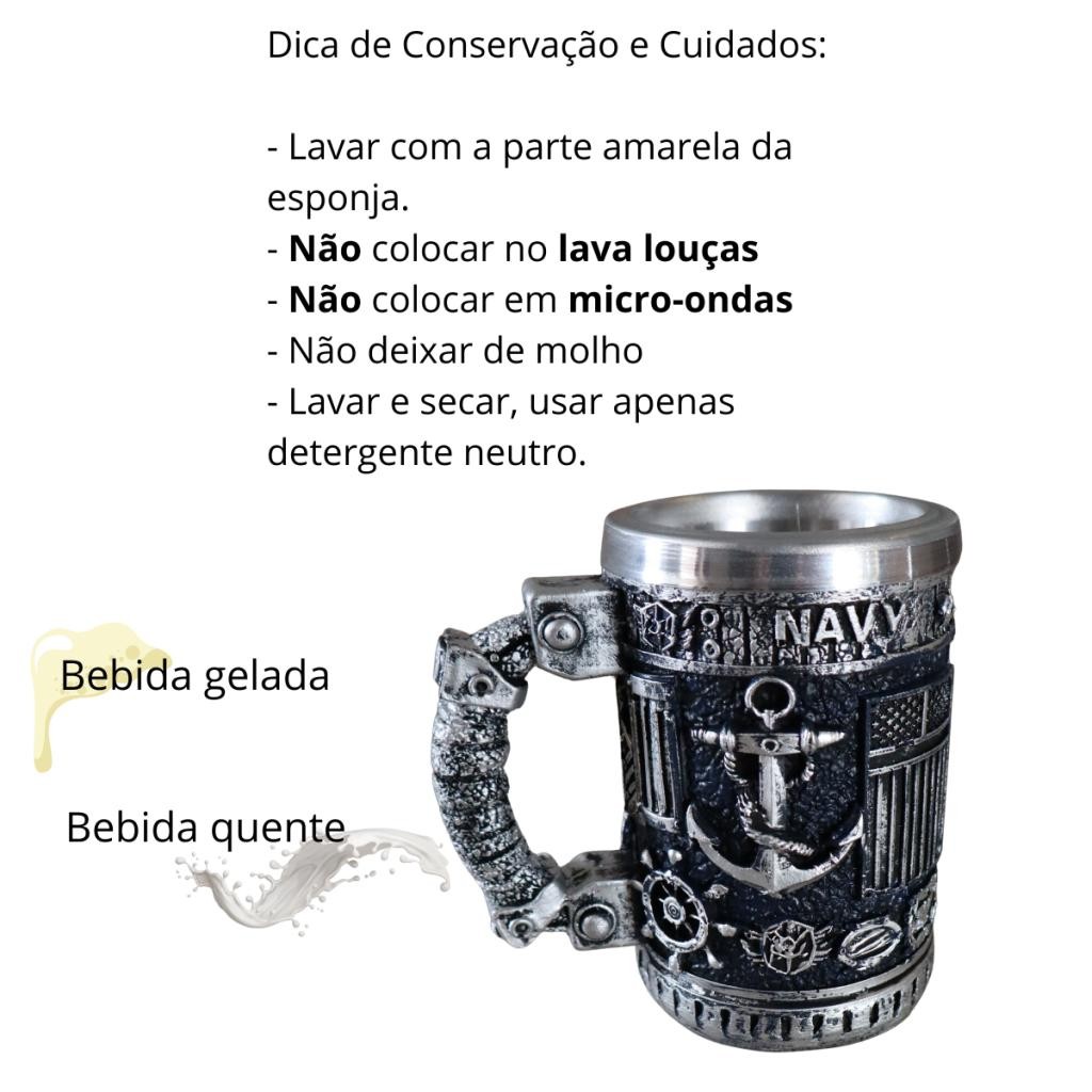 Caneca de Chopp Cerveja Navy Marinha Naval Resina e Aluminio 300 ML