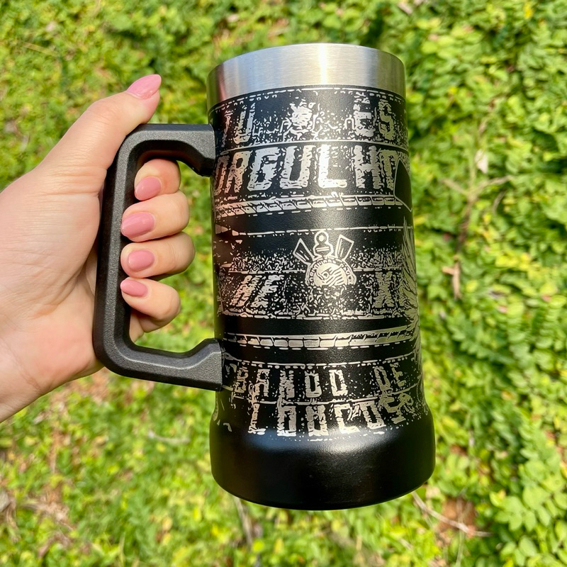 Caneca de Chopp CORINTHIANS FIEL em Aço Inox 710ml – Térmica com Arte 360º Gravada