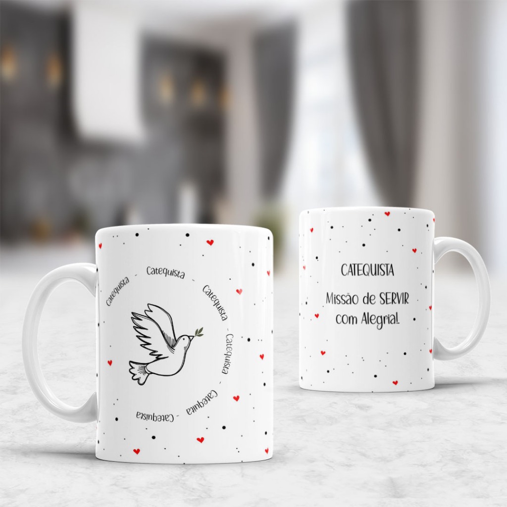 Caneca de Porcelana Personalizada 325ml Catequista Nome e Frases Personalizadas
