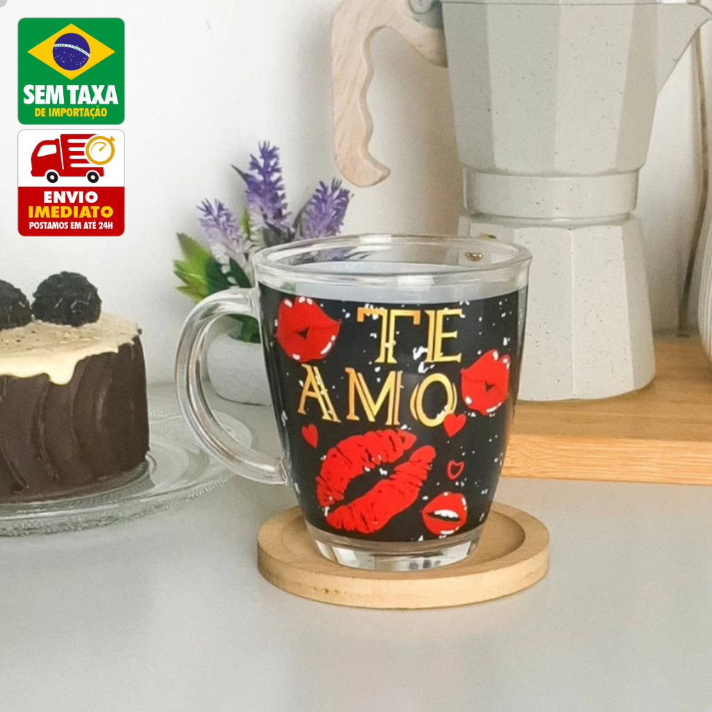 Caneca de Vidro 380ml Estampada Mensagens Românticas Te Amo Presente Namorado Amigold