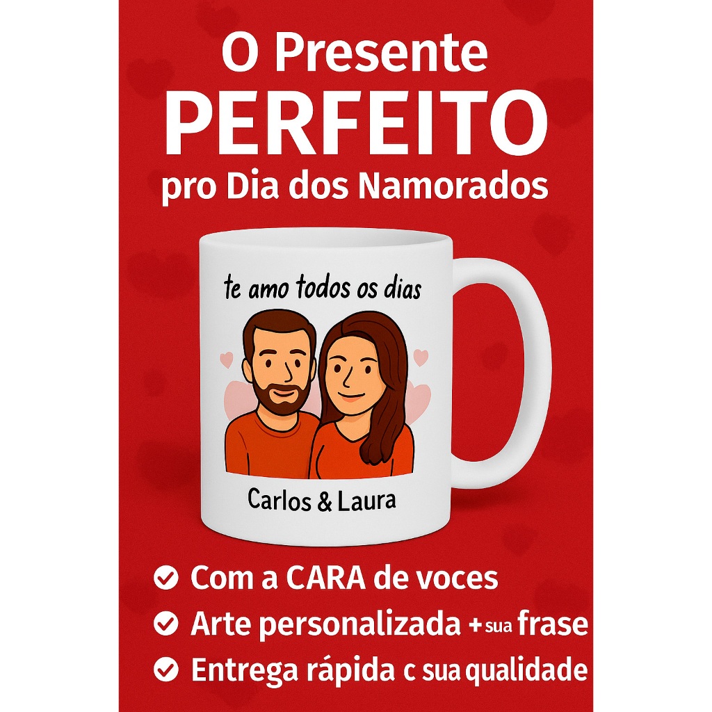 Caneca Dia dos Namorados com Caricatura – Presente Personalizado com Nome, Foto e Frase ❤️