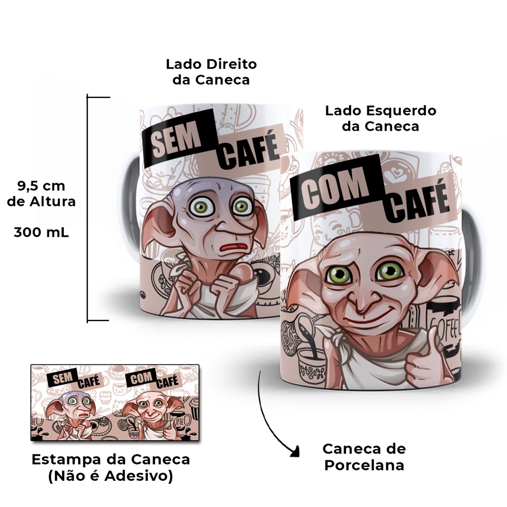 Caneca Dobby Harry Potter Com Café Sem Café Porcelana