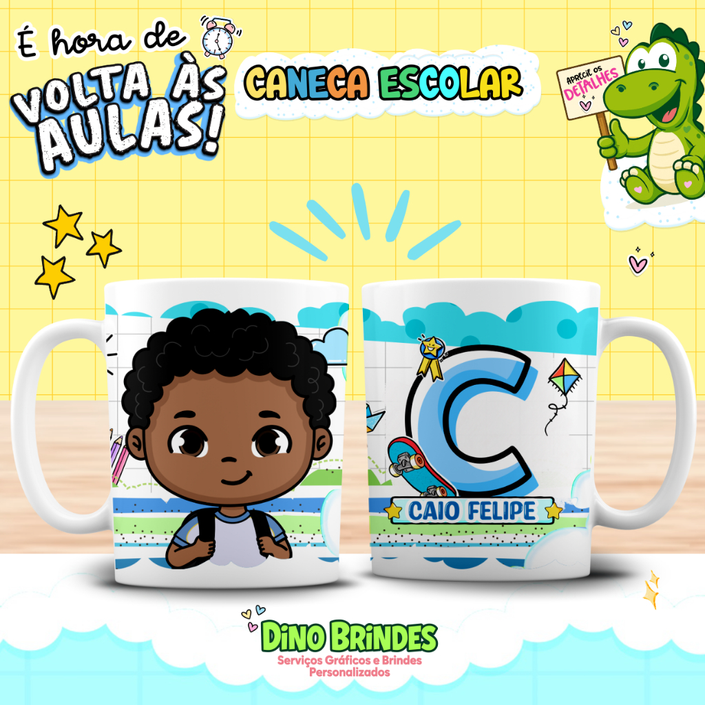 📚✨ Caneca Escolar Personalizada Infantil 400ml – 🧒Alunos (Pele Negra e Cabelo Preto) ✔️