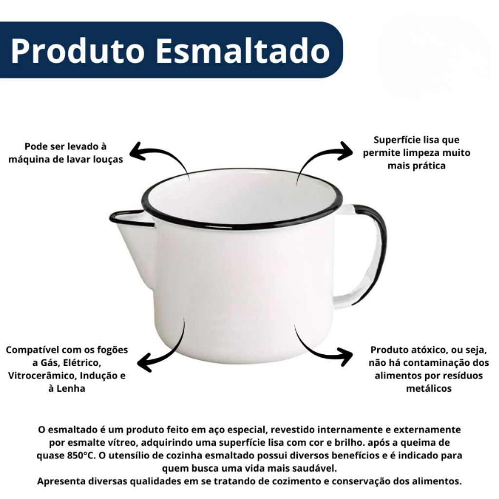 | Caneca Leiteira Com Bico Esmaltada Fogão Indução - Elétrico - Fogão... | R$ 37,99 | 19% | 4.9/5 | 167 |