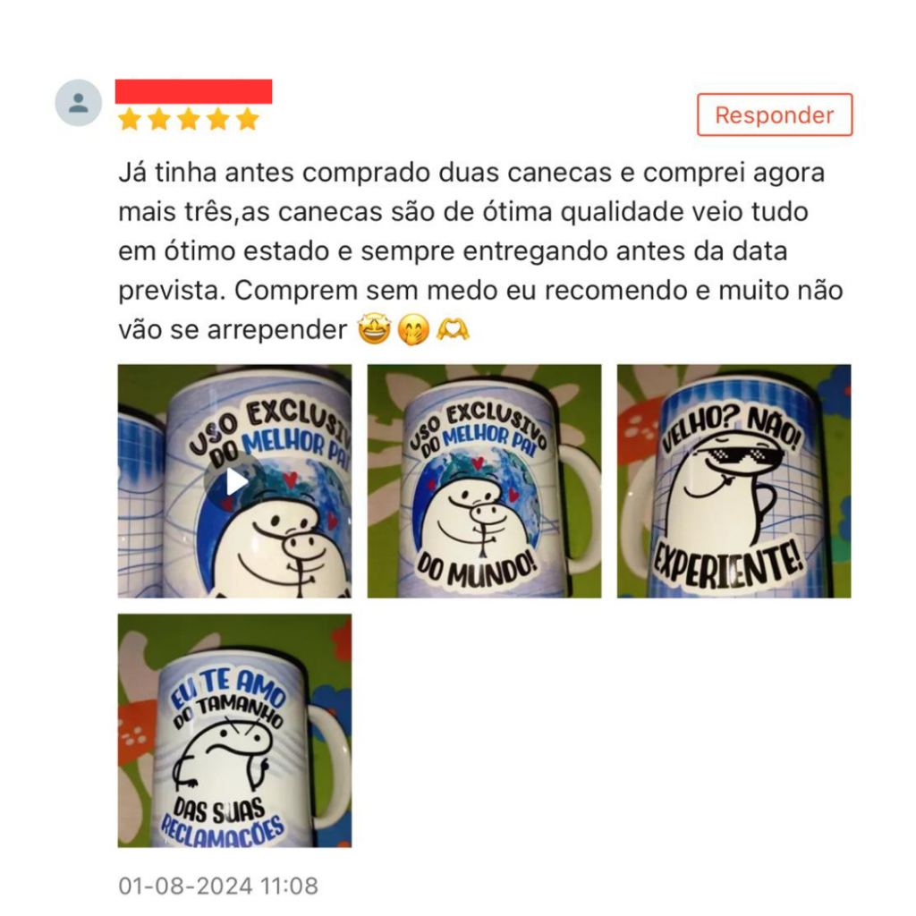 Linda Caneca Flork para o Dia dos Pais. Excelente opção para presentear quem você mais ama. Presentear com uma caneca é ótimo, pois é um presente que agrada a todos. São 18 modelos para você escolher. A Shopee limita a compra em 7 canecas, caso queira uma quantidade maior é só entrar em contato pelo chat que criamos um anúncio com a quantidade que você precisa. Temos vários Kits com preço de Atacado, quanto maior a quantidade menor o preço. Veja em nossa loja. Nossas canecas são especialmente desenvolvidas para pessoas modernas. Com material diferenciado, alça que se ajusta a mão de maneira confortável. Fabricadas em cerâmica resistente e personalizável, proporcionando um ajuste ideal a qualquer pessoa. Combinam com diferentes ambientes e pessoas, tanto utilizando para decoração quanto para uso diário. Sempre com artes exclusivas, cheia de efeitos para dar mais autenticidade e estilo aos nossos clientes. A impressão é efetuada com alto padrão de qualidade, o que garante cores vivas e durabilidade acima da média. Enviamos em embalagem protegida com plástico bolha, para que o produto chegue para você sem avarias. Compre com quem cuida da embalagem, para você não ter surpresas. >> ATENÇÃO << O anúncio é referente a uma caneca. Nas imagens é possível ver a frente e o verso da mesma caneca. Podem haver alterações na tonalidade das cores entre o que é visto aqui na tela e o produto que você irá receber. Trata-se de um modelo pronto, postaremos em até 3 dias úteis após a confirmação do pagamento. Nossos produtos vão super bem embalados e bem protegidos com plástico bolha. >> INFORMAÇÕES GERAIS << - Capacidade: 325 ml - Material: Cerâmica - Não Desbota - Pode ser usada no Microondas - Altura da caneca 9,5 cm - Diâmetro da caneca: 8 cm - Cor da Caneca: Branca - Conteúdo da embalagem: 01 Caneca >> PORQUE COMPRAR DE NÓS? << Primeiramente seja Bem Vinda (o) a Loja Fortunelo Presentes. Somos especialistas em fabricação de Canecas e Presentes, temos o compromisso com todos os clientes de sempre fornecer produtos de alta qualidade. Já realizamos a entrega de milhares de Presentes, proporcionando o sorriso no rosto e alegria das pessoas que os recebem. >> ALGUMAS CARACTERÍSTICAS DA NOSSA EMPRESA PARA SUA ANÁLISE << - A empresa existe há mais de 2 anos - Acreditamos na qualidade de nossos produtos e queremos acabar com a sua dúvida, se você não gostar pode devolver o produto em 7 dias sem nenhum custo de postagem e terá seu estorno de volta. - Enviamos pedidos para todos os estados do Brasil todos os meses. - Acreditamos no Brasil e na nossa responsabilidade como empresa. - Tratamos o cliente da forma que ele merece e cuidamos do pós venda de uma forma exemplar. >> DÚVIDAS FREQUENTES >> As Canecas são de Qualidade? Sim. Utilizamos matéria prima com Alta Qualidade para garantir uma ótima experiência de compra ao cliente. As Caneca vão Bem Embaladas e Protegidas? Sim. Utilizamos caixa de papelão e fazemos uma embalagem ótima com bastante plástico bolha para proteger seu produto. Vou ter suporte caso precise de alguma ajuda? Sim. Daremos total suporte durante e após a sua compra para esclarecer qualquer dúvida.
