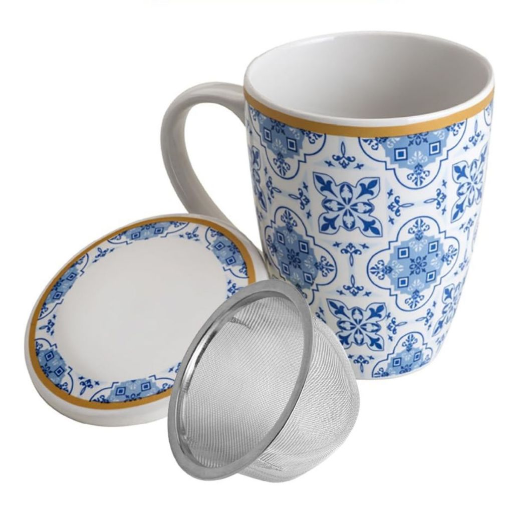 CANECA INFUSORA DE CHÁ DE PORCELANA COM TAMPA