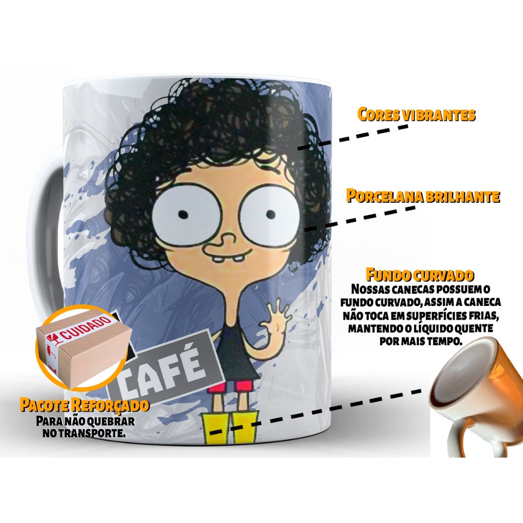 Caneca Irmão Do Jorel Com Sem Café + Caixa - Xícara Divertida 325ML Cerâmica