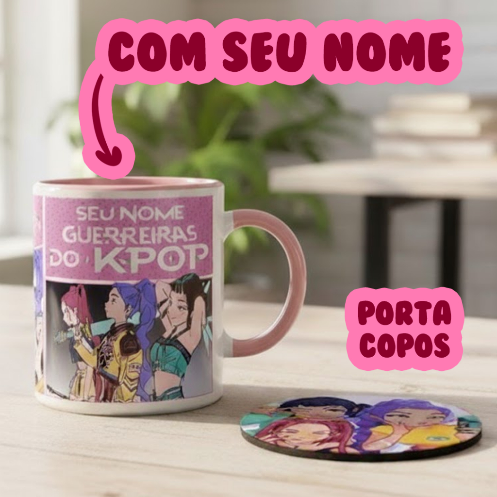 Caneca Kpop Personalizada com Nome | Guerreiras do K-pop 325ml – O Presente Perfeito para Fãs! Para todo fã de K-pop e Doramas! Apresentamos a Caneca Personalizada Guerreiras do K-pop, inspirada na série de sucesso da Netflix. Carregue a energia e atitude das personagens Rumi, Mira e Zoey direto para a sua rotina! Seja para tomar seu café, decorar a mesa ou presentear um Kpopper apaixonado, esta caneca de cerâmica 325ml é o item perfeito para celebrar sua paixão pela cultura coreana. Por que esta é a Caneca Kpop ideal para você? 🏆 TOTALMENTE PERSONALIZÁVEL: Transforme sua caneca em um item único! Adicione seu nome ou o nome de quem você ama, tornando-a um presente inesquecível. ✨ DESIGN EXCLUSIVO: Arte vibrante e empoderada, inspirada nas Guerreiras do K-pop (Rumi, Mira e Zoey), ideal para colecionadores e fãs da série. 🎁 O PRESENTE KPOPPER PERFEITO: Procurando um presente criativo? Esta Caneca Personalizada é a escolha certa para surpreender fãs de K-pop, doramas e séries coreanas em qualquer ocasião. 💎 QUALIDADE PREMIUM: Feita em cerâmica 325ml de alta resistência, com impressão de alta definição que não desbota. Como Personalizar com seu NOME: É muito simples! Após confirmar a compra, envie o nome desejado através do chat do pedido ou no campo "Observações". ***Atenção: Caso o nome não seja enviado em até 24h, a caneca será produzida no modelo padrão (apenas com a arte), sem personalização. Variações Disponíveis (Escolha a sua!): Temos a maior variedade de cores para sua coleção: 🖤 Preto 💙 Azul Marinho 🔥 Mágica (Surpresa! Fica preta e revela a arte com líquido quente!) 🧡 Laranja 💖 Rosa ❤️ Vermelho 🤍 Branco (Tradicional) 💖 Alça de coração Rosa 📋 Especificações Técnicas da caneca Produto: Caneca Personalizada Kpop - Guerreiras do K-pop Material: Cerâmica de Alta Qualidade (Tipo Porcelana) Capacidade: 325 ml 📋 Especificações Técnicas Porta-Copos: Material: Neoprene emborrachado (flexível e resistente à umidade) Formato: Redondo (9 cm de diâmetro x 3 mm de espessura) Estampa: Apenas de um lado Impressão: Alta definição (Sublimação) Uso (Canecas Comuns): Pode ir ao Micro-ondas e Lava-louças. Uso (Caneca MÁGICA): Pode ir ao micro-ondas. Para maior durabilidade, lavar com o lado macio da esponja e evitar lava-louças. Garanta já a sua Caneca Personalizada Guerreiras do K-pop e leve o poder da sua série favorita para o dia a dia com muito estilo!