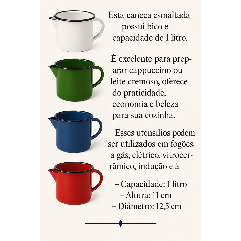 Caneca Leiteira Com Bico Para Ferver Leite Agua Esmaltada Ágata Metallouça