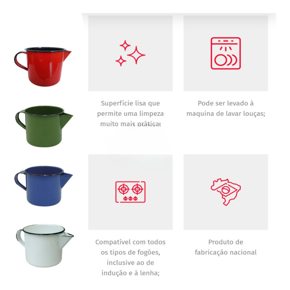 | Caneca Leiteira Fervedor Café Rústica Esmaltada 1L Branca este produto | R$ 37,91 | 5% | 5.0/5 | 5 |