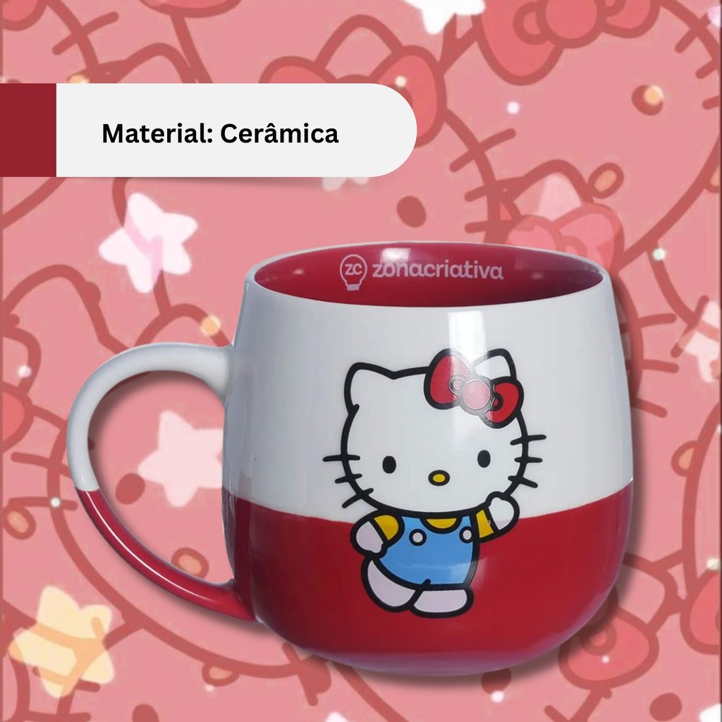 Caneca Maggie 400ml Hello Kitty em Cerâmica Zona Criativa Para Café e Bebidas Quentes - 10025915