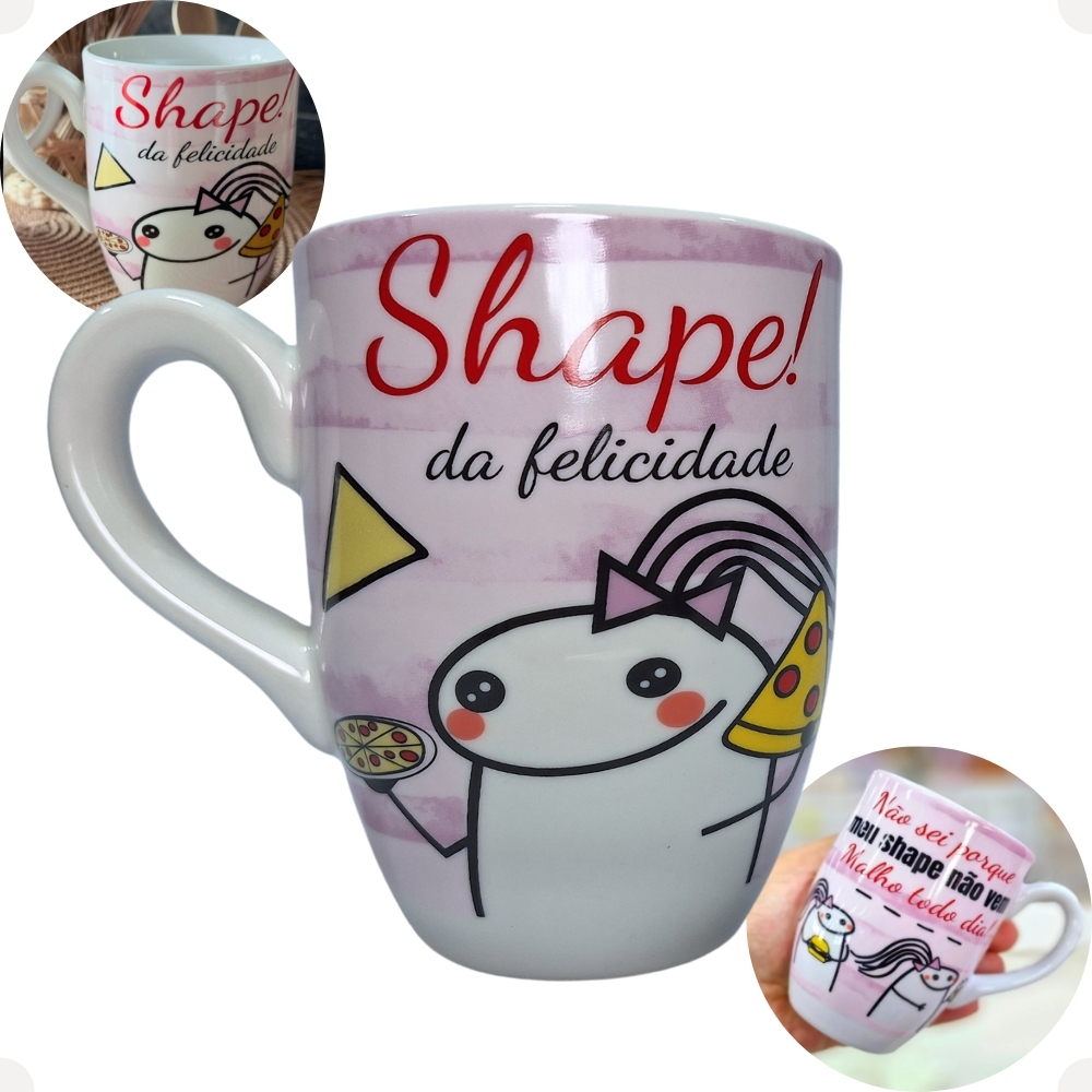 Caneca Meme Shape da Felicidade Malho Todo Dia! de 300ml Porcelana Coleção Meme da Haüskraft Xicara