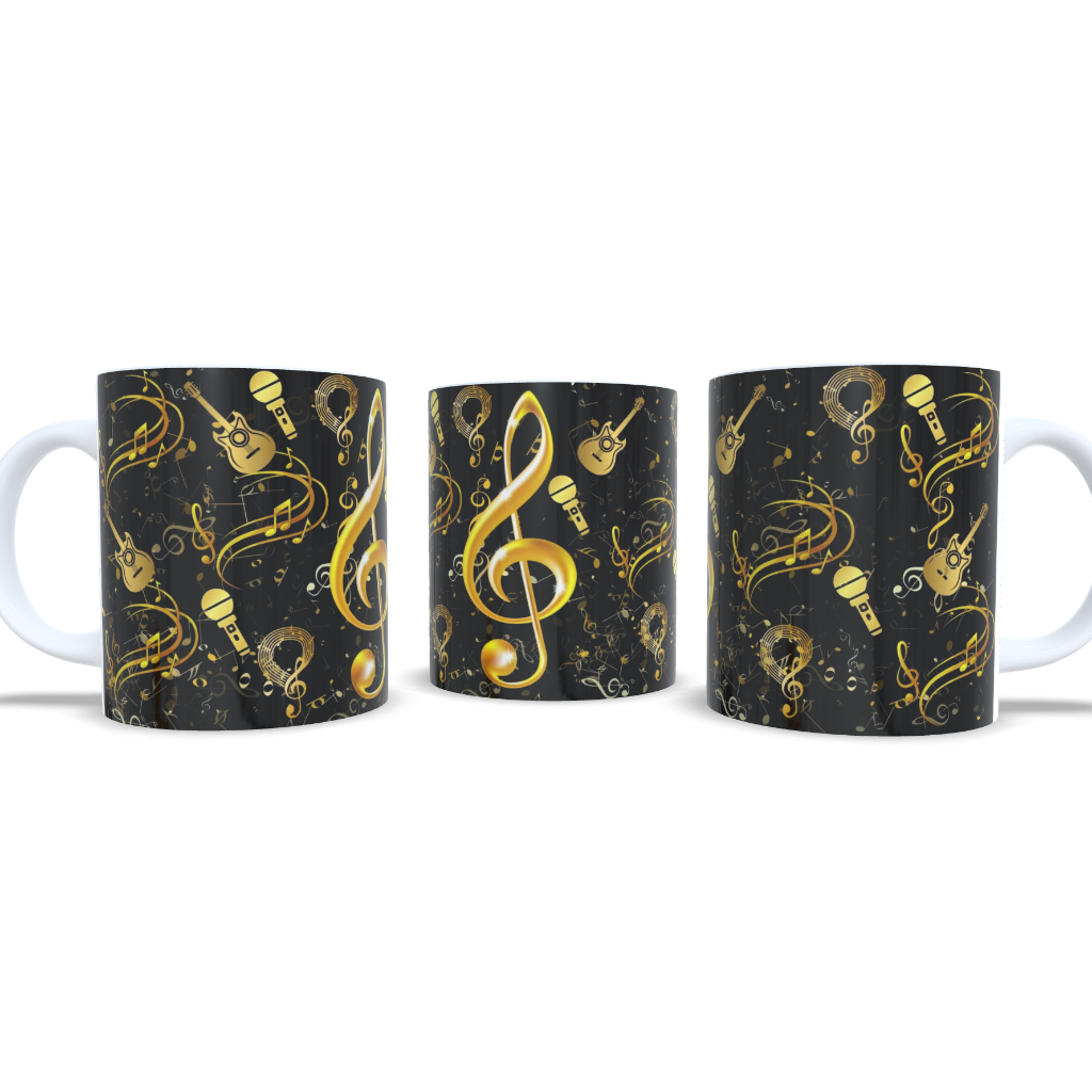 Caneca Notas Musicais Douradas Porcelana embalada para presente