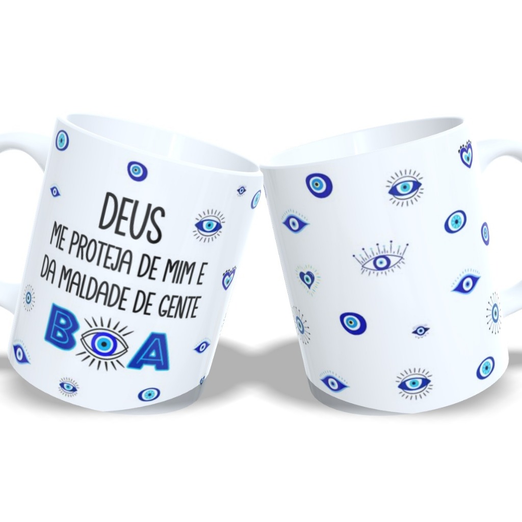 Caneca Olho Grego Proteção Mau Olhado | Cerâmica 325ml | Presente Amuleto | Diversos Modelos
