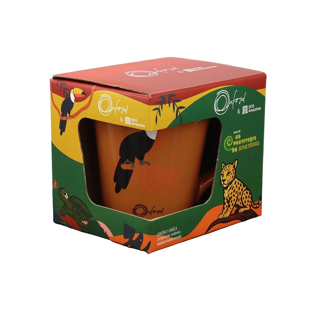 Unindo propósito e design, a Oxford em uma parceria inédita com a ONG SOS Amazônia apresenta a coleção de canecas Os Protetores da Amazônia. Parte das vendas das canecas será destinada a ações de conservação, recuperação e sensibilização ambiental da maior floresta tropical do planeta. Cada caneca traz ilustrações exclusivas e cativantes de espécies nativas da Amazônia. O tucano, com seu bico colorido e marcante, atua como dispersor de sementes, sendo parte essencial da regeneração natural da floresta. A caneca Tulipa possui fundo na cor marrom e ilustração colorida de tucano. Conteúdo da embalagem: 1 Caneca Modelo Tulipa Volume 330 Ml | Diâmetro 9,5 Cm | Altura 10,5 Cm - Garantia: 3 Meses para Defeitos de fabricação - Marca: Oxford - Cor: Marrom - Uso: Resistente a micro-ondas - Tipo da embalagem: Caixa litografada - Tipo: Caneca - Material: Cerâmica - Origem: Nacional - Decoração: Temática - Formato: Cônico - Linha/Decoração: Tulipa Tucano da Amazônia - Conjunto ou avulso: Avulso ATENÇÃO: Para compras de pessoa jurídica,cadastreosdados exatamente como consta em seu cartão do CNPJ