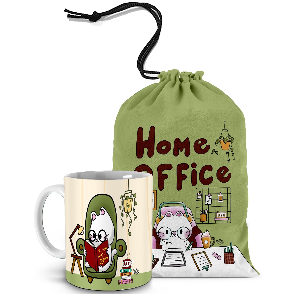 Caneca Para Amantes De Livros, Café E Gatos! Saquinho Para Caneca