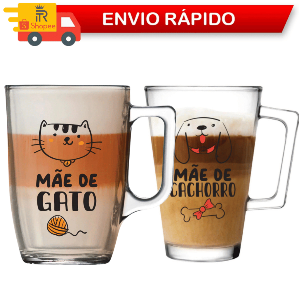 Caneca Para Café e Chá Leite Milão 330ml e Roma 230ml Pets Estampas Mãe de Gato Mãe De cachorro