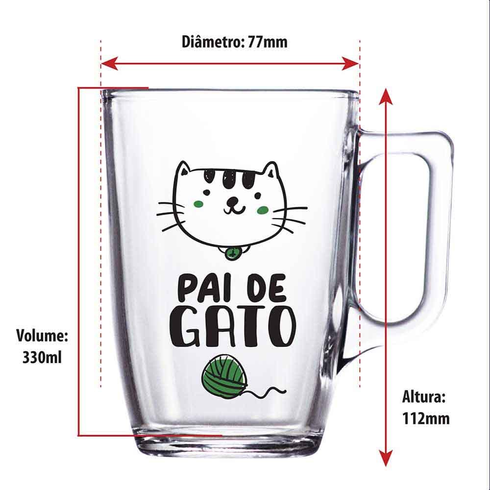 Caneca Para Café Milão, Caneca de Vidro Com Estampa Pai de Gato 330ml - Ruvolo