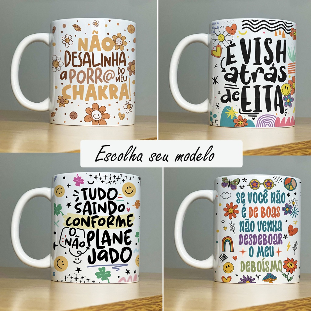 Caneca personalizada engraçada frases divertidas good vibes indelicadas em ceramica 325ml