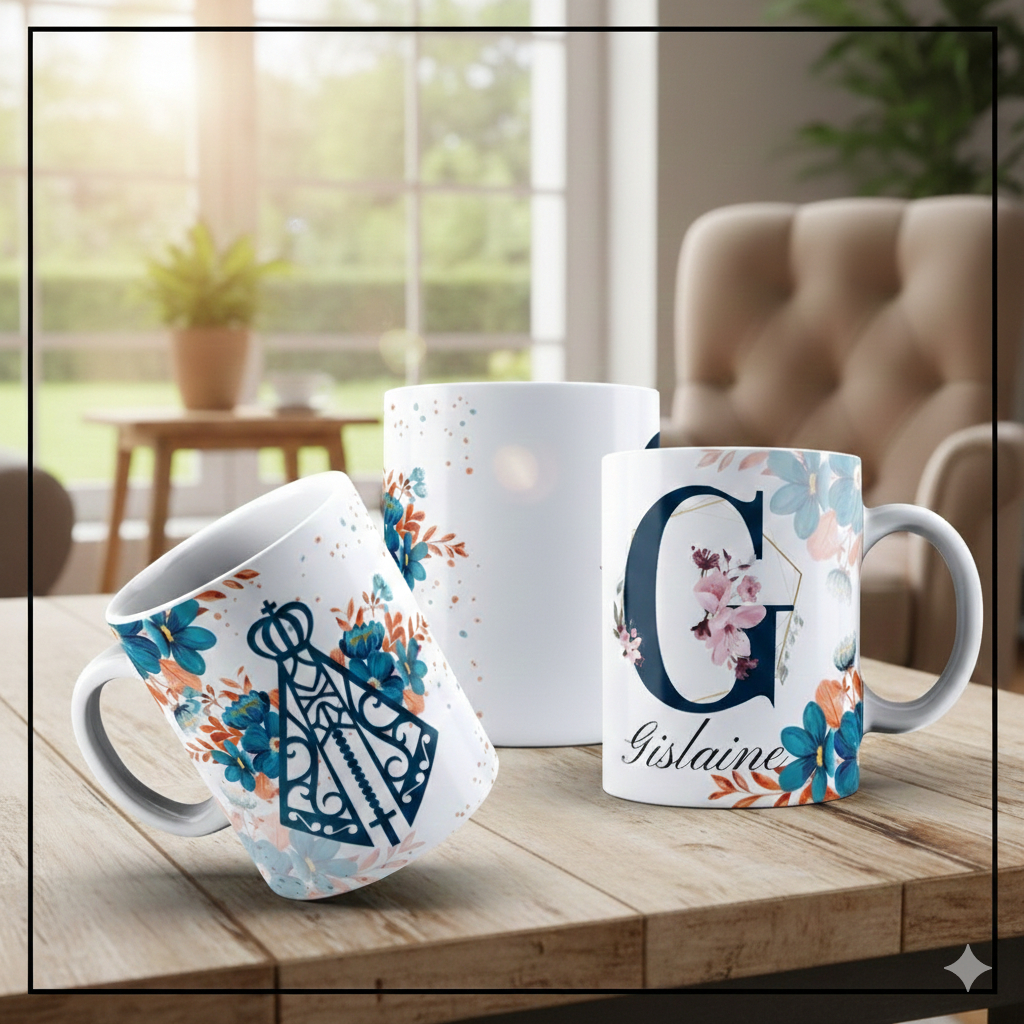 Caneca Personalizada Nossa Senhora Aparecida com Sua Inicial e Nome de Porcelana Fé PRESENTE DE PÁSCOA