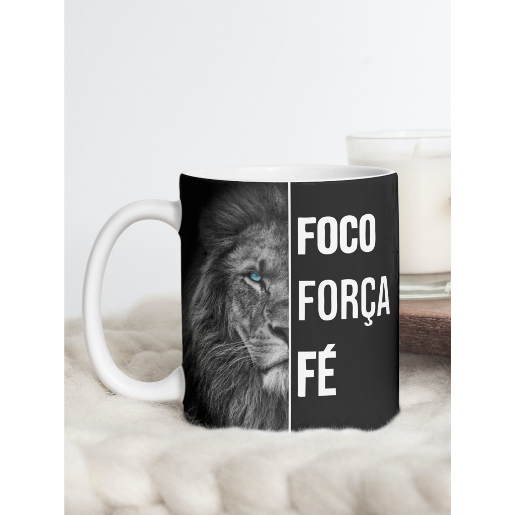 Caneca porcelana Leão de Judá Jesus Cristo Foco Forca e Fe