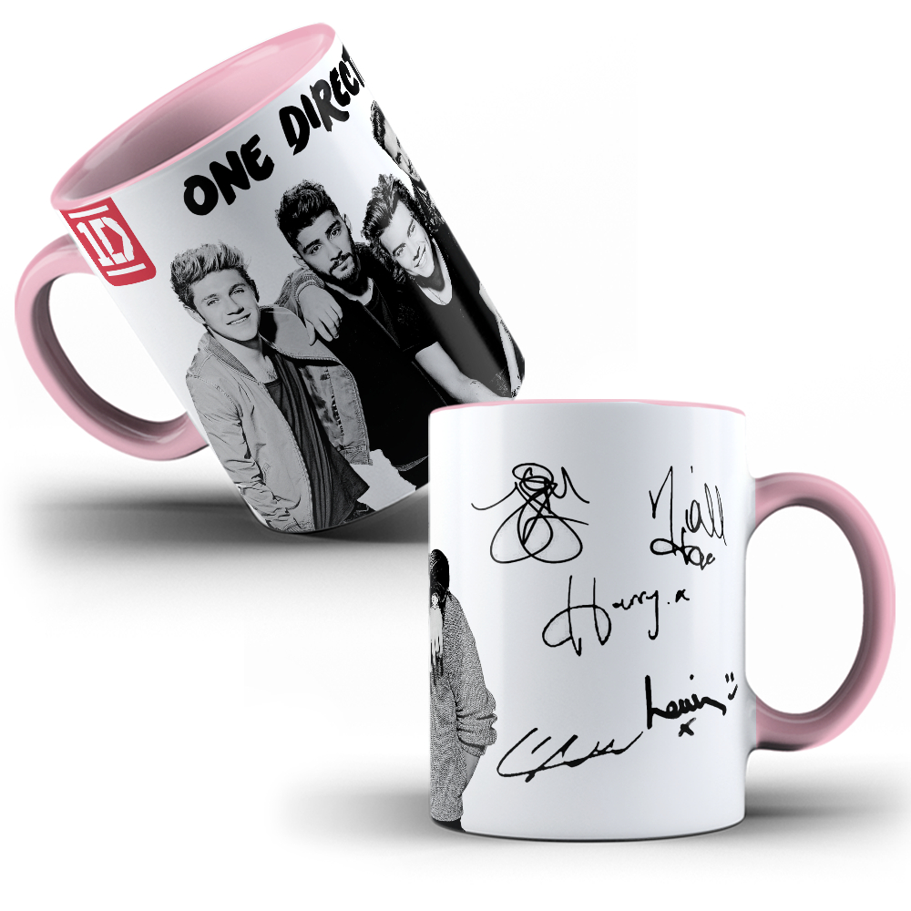 Caneca Porcelana One Direction Harry, Louis, Niall, Zayn e Liam Assinaturas e Foto. A personalização é definitiva pois o processo é feito por transferência térmica. Podendo ser levada ao micro-ondas, lava-louças ou congelador sem que haja nenhum tipo de alteração. A caneca tem capacidade de 325 ML.