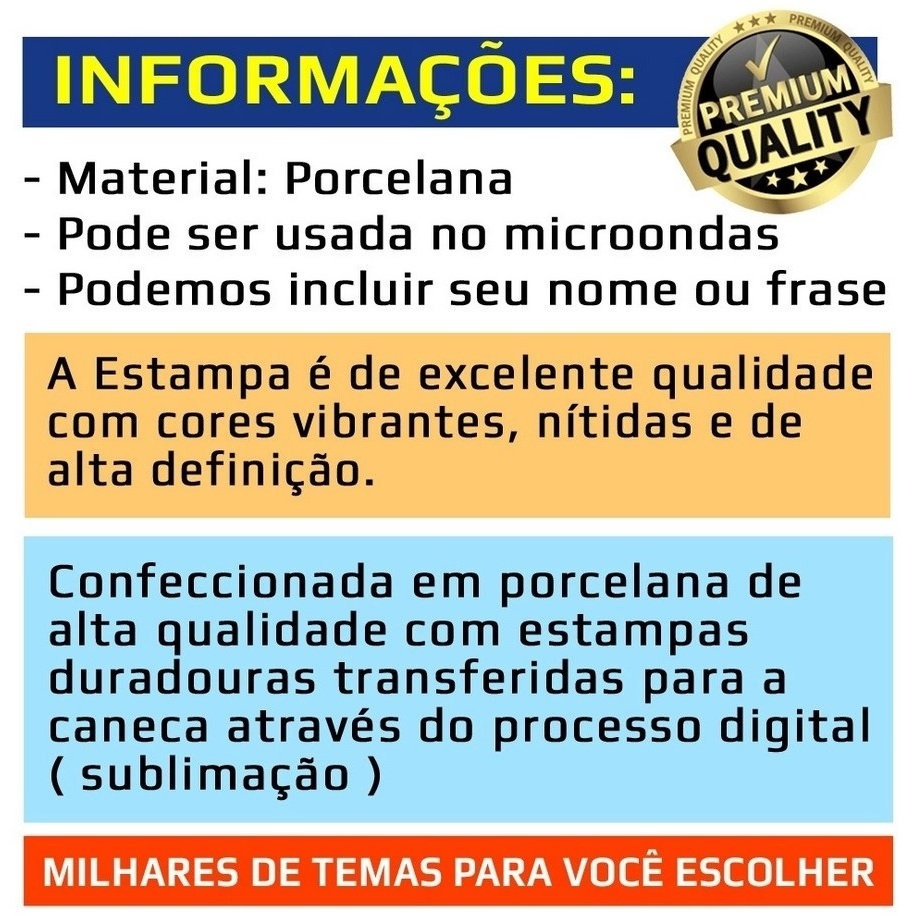 AD Personalizados Canecas Personalizadas de Porcelana. Estampamos sua Caneca do jeito que você desejar. A caneca é personalizada através da sublimação, garantindo cores vibrantes, fiéis a ideia original e altamente resistentes à micro-ondas. ATENÇÃO!!! No Ato da compra já deverá INFORMAR SE DESEJA A PERSONALIZAÇAO DA CANECA e enviar de imediato a FOTO, NOME e os DIZERES de sua preferência pelo chat que ficará disponível nos DETALHES DA COMPRA. Caso contrário entenderemos que a caneca não deverá ser personalizada com nome e será enviada conforme modelo do anuncio. Se desejar uma Estampa diferente do Anúncio, VERIFIQUE ANTES DE EFETUAR A COMPRA A DISPONIBILIDADE. DEVIDO AOS NOVOS PRAZO DE ENVIO DO SHOPEE SERÁ OBRIGATÓRIO NO ATO DA COMPRA JÁ INFORMAR TODOS OS DETALHES E ENVIO DAS FOTOS PARA A PERSONALIZAÇÃO PELO PRÓPRIO CHAT DO SHOPEE, CASO NÃO SE MANISFESTE A CANECA SERÁ ENVIADA SEM PERSONALIZAÇÃO. As Fotos do Anúncio referem-se a Estampa Frente e Verso da Caneca – Portanto o Envio é de uma única Caneca. INFORMAÇÕES DO PRODUTO - Produto importado (Caneca de qualidade e brilho superior) - Capacidade: 325 ml - Material: Porcelana - Altura da caneca 9,5 cm - Medidas da Estampa na Caneca 21cm x 9,5cm