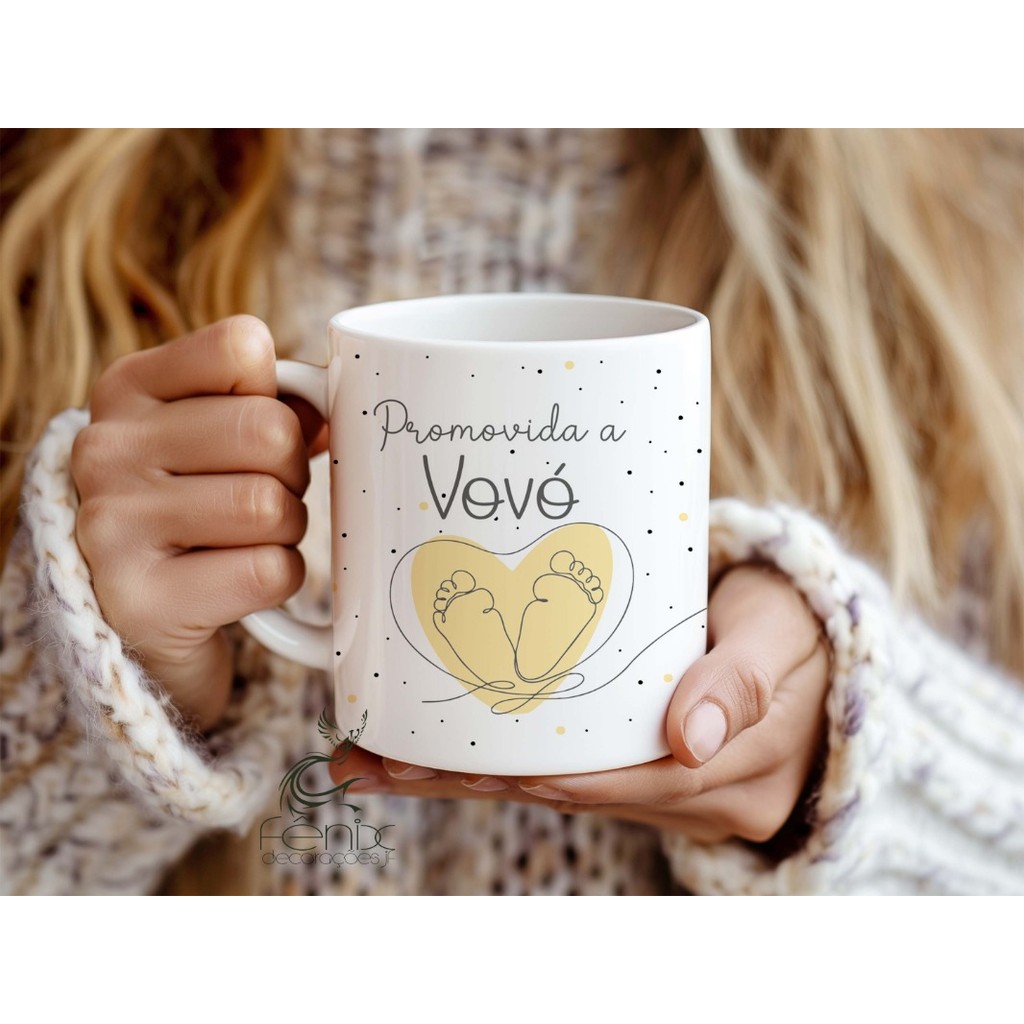 Caneca Promovida a Vovó - Cegonha Lembrancinha Chá Revelação Batizado - Porcelana 325 ML